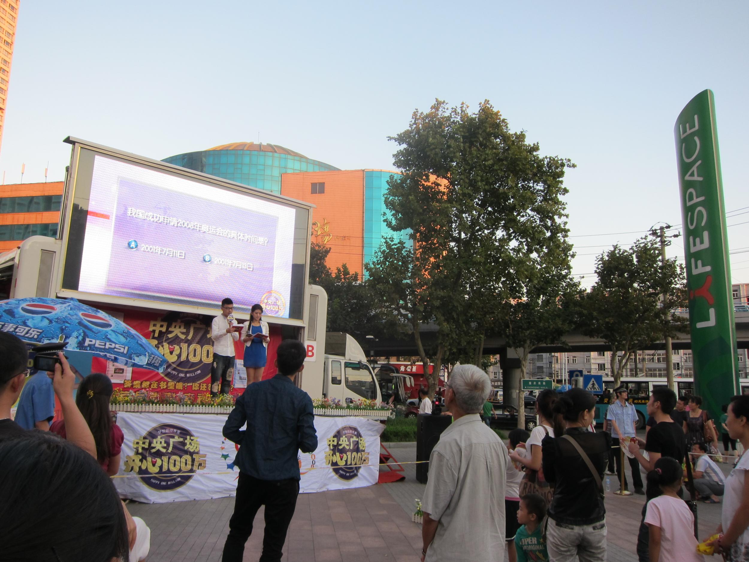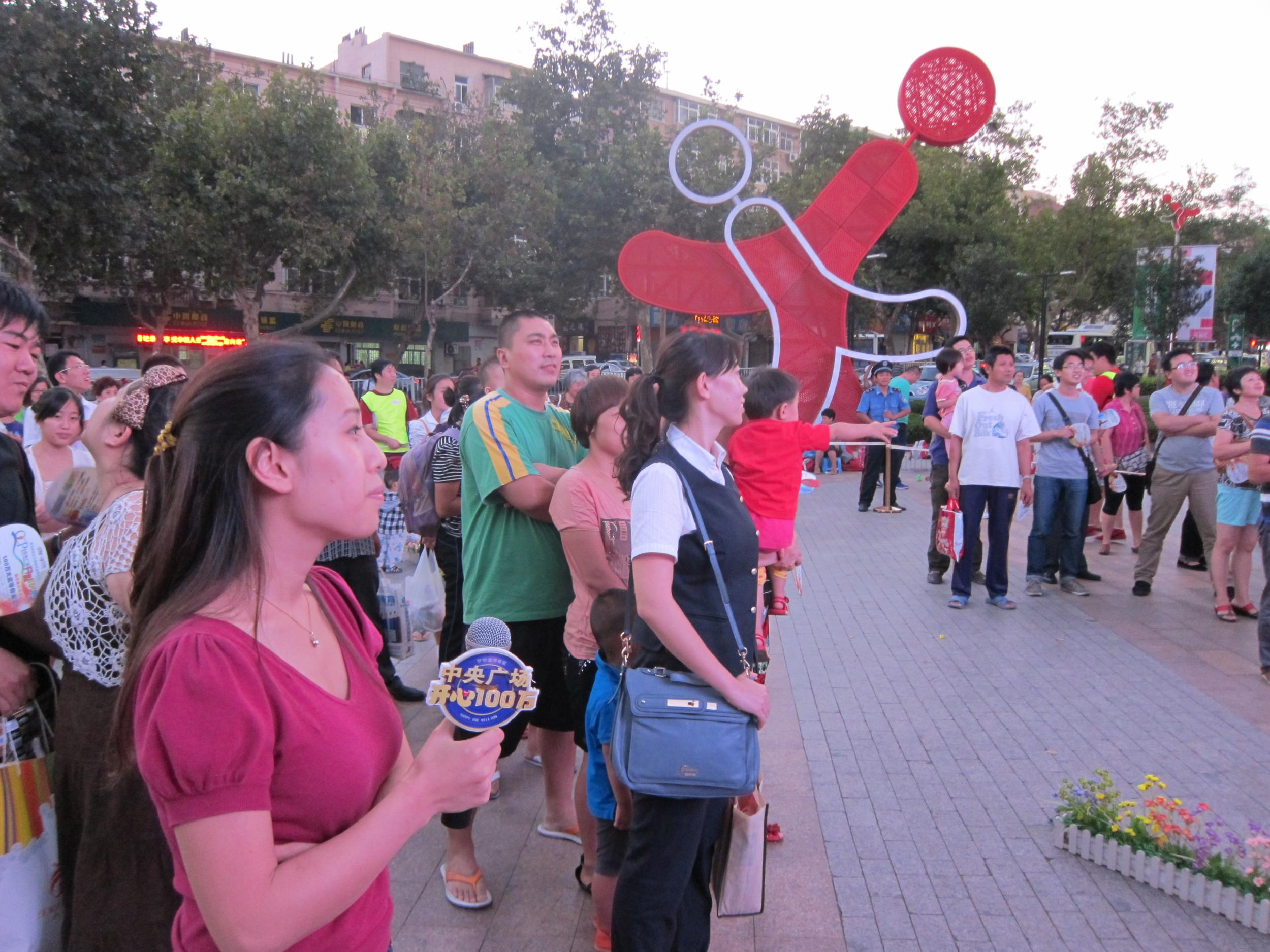 为深入贯彻市委市政府将青岛打造成为宜居幸福的现代海洋文化名城的要求,使文化青岛建设深入民心,继五四广场大型户外海选之后,昨晚6点,青岛电视台中央广场《开心100万》栏目走进四方区乐都汇购物广场,开启了新一轮海选活动。本次海选活动依然采取AB两选区对应AB两个选项,选手根据题目判断选择站在对应的选区的答题形式,而考题也不例外的出自《宜居青岛 幸福城市》丛书。